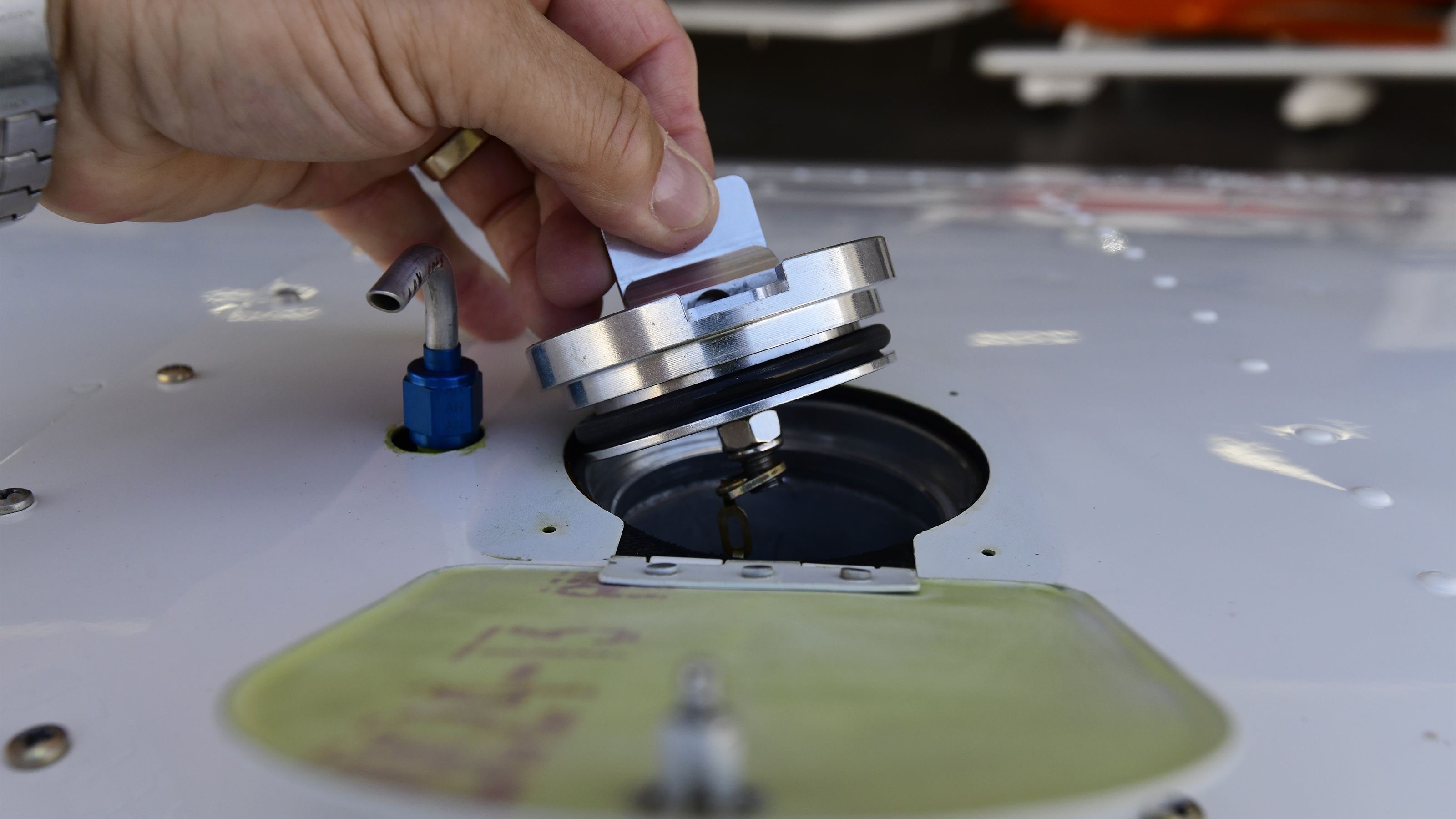 An LED illuminates the center-floor mounted red aluminum left/right/off fuel tank lever and a control yoke-mounted countdown timer can assist with fuel management.